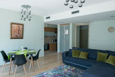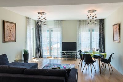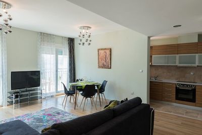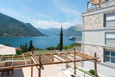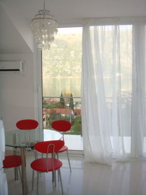 Апартамент, площадью 120м2, включает в себя 3 спальни, просторную гостинную, столовую зону и кухню, просторную ванную комнату и террасу с потрясающим видом на Которский залив.