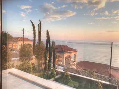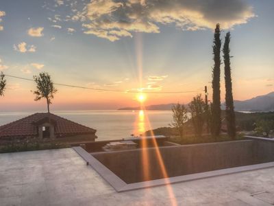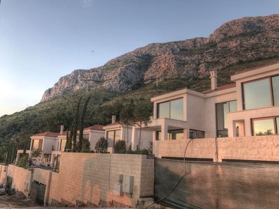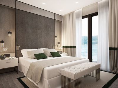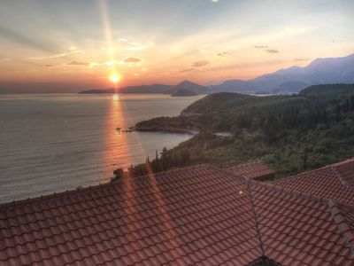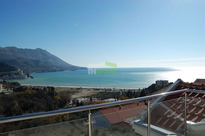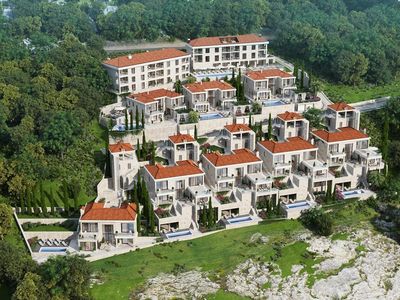Natural-stoned villa built in modern style using high quality materials is located above the sea on the cliff in upscale village Rezevici.