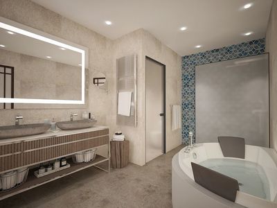 2nd floor: three bedrooms with bathrooms. There are accesses from two bedrooms on the terraces.
