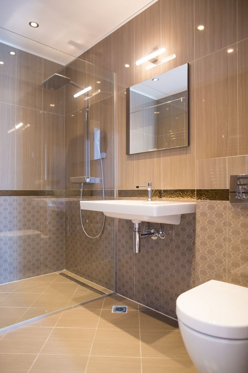 Ground floor: guest room with wardrobe and bathroom, living room, bathroom, laundry, gym and sauna. Access from the living room to the terrace with swimming pool, based on it, is provided.