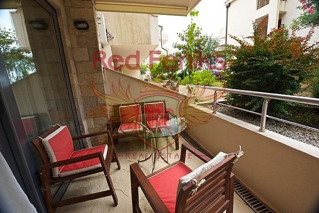 Квартира находится в одном из самых лучших комплексов вЧерногории, в поселке Пржно. Квартира находится на первом этаже четырех этажного дома. Площадь квартиры составляет 64м2. Квартира состоит из совмещенной кухни с гостиной, двух спален, ванной комнаты и террасы снебольшим садом. Квартира полностью меблирована, кухня оборудована всемнеобходим , установлен климат контроль тепло/холод во всех комнатах. Под комплексом находится двухуровневая парковка дляавтомобилей. На территории комплексе находиться большой бассейн с зоной отдыха. В пешей доступности от комплекса находится королевский парки жемчужина черногорского побережью остров Св.Стефан. Расстояние до моря 400 метров. Пржно – является уникальном местом для отдыха, ведь это курортный рыбацкий поселок, где можно прогуляться по уютным старым улочкам, посидеть в одном из многочисленных рыбных ресторанчиков на прекрасной набережной. В Пржно можно совершить прогулку по красивейшему пляжу Адриатики до жемчужины Черногории - острову Св.Стефан. Пржно является бывшей королевской резиденцией с роскошным ботаническим садом, площадь которого составляет 18 гектар. Расположенный здесь «Королевский пляж» по праву считается одним из самых красивых пляжей Адриатического побережья, а каменные здания гостиницы в Милочере, были в свое время замком и излюбленным местом отдыха для королевской семьи Караджорджевичей.
