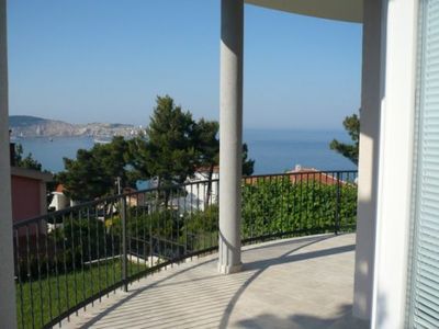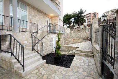 The total area of 350 m2 House size m2: 175 m2 + 175 m2 Plot size, m2: 350 The total cost 410 000 € (205 000 € for the half of the house) A newly built three-storey house is located in a Green zone (municipality of Bar) the most popular area of the city Bar. Green belt has an amazing nature, pine trees, healthy air, peace and tranquility, thanks to this, the Bar got its name. Green belt is under state protection and in the area of construction limited. The house is designed so that it is great for stay for one or two families. Accordingly, there is the possibility of buying half of the house, and the house entirely. Has all required documentation – construction permit. Paid all provided by state fees for connection to city communications. The completion of the rough construction works (finishing) – 10. 11. 2012. The house comes with interior and exterior trim - turnkey. Each half of the house consists of: 1st floor, kitchen, living room with exit to the terrace, bathroom; 2nd floor two bedrooms, bathroom, exit to the terrace; 3rd floor open terrace, kitchen. Distance from the sea 400 meters. The terraces offer beautiful views of the sea, the port and the center of the Bar.