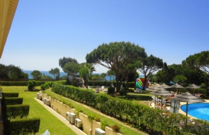 An excellent duplex townhouse with fantastic ocean views is located in the closed condominium of the city of Albufeira, 150 meters from the beach, close to shops, restaurants. The house has on the ground floor a living room, equipped kitchen, bathroom and a large terrace with a green lawn. On the second floor & ndash; Two bedrooms with bathroom. There is a garage. The condominium has a garden, swimming pools for adults and children. Excellent investment opportunity!