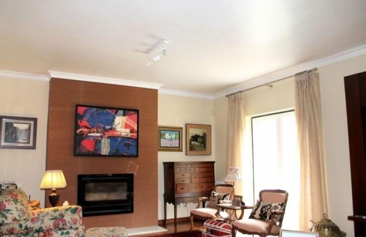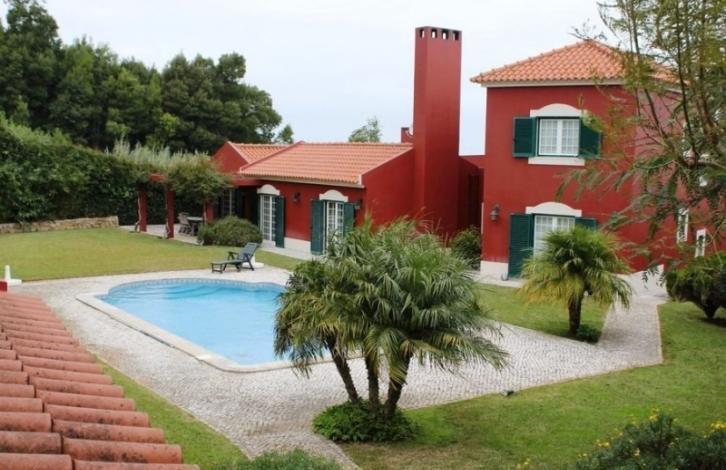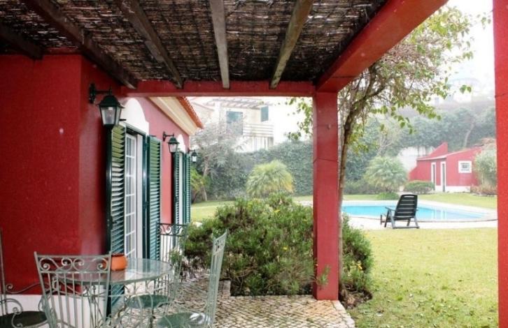 A magnificent two-storey villa with a garden and a swimming pool is located in Sintra. The villa has a large living room of 75 m2 with a fireplace, five rooms, a cozy kitchen, five bathrooms. The area of the plot is 1640 m2 with garden, pool and barbecue area.