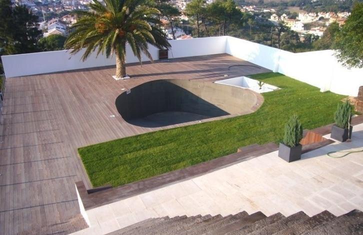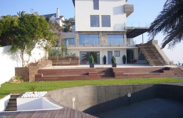 Modern villa situated on the highest point of Estoril, which offers a fantastic panoramic view of the city of Estoril and the ocean. This unique villa has been carefully designed, thought out all the details in the construction of only high quality materials. The spacious rooms distributed on four etazhah. Na the top floor there are 2 bedrooms of 20 m2 each, with a large room of 35 m2, bathroom with Jacuzzi and direct access to the terrace 49m2. The main entrance leads into an open living room with fireplace, dining room and fully equipped modern kitchen (total area of 160 m2), which open onto a terrace and basseynu. Na the ground floor there is another room of 20 m2, games room 66 m2 with access to the porch with stairs at the basin level, laundry room (19 m2) and warehouses (7 m2). On the pool level there is a gym and a small room. Swimming pool surrounded by gardens and a large deck.