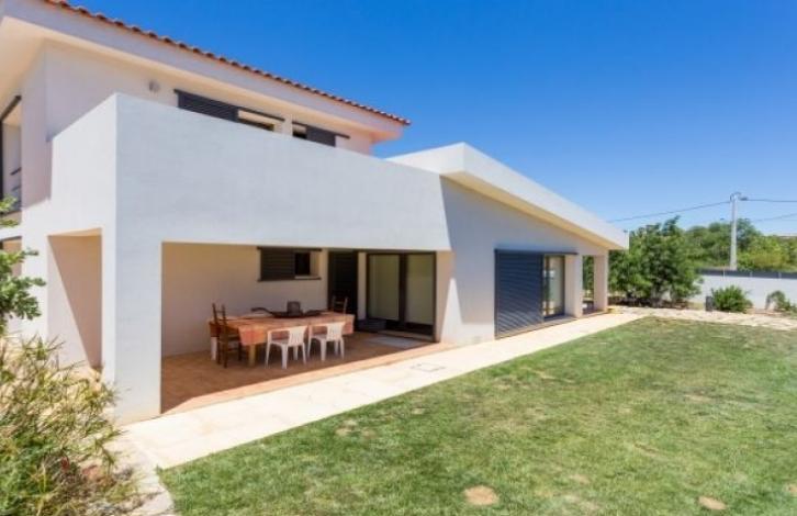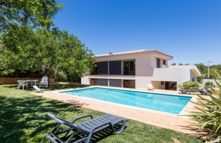 Modern Villa located in the centre of Albufeira, close to stunning beaches, Golf courses and all necessary infrastructure. Villa built to the highest quality standards on a large plot with a beautiful garden in which there is an automatic system for irrigation and swimming pool. On the ground floor is an entrance hall, spacious living room with fireplace, fully equipped kitchen, two bedrooms, bathroom, WC and large terraces. Upstairs are two bedrooms with bathrooms and a terrace. Equipment: air conditioning, Central heating, TV, Internet and phone outlets in all rooms, tank 30,000 liters of rainwater, thermal and acoustic insulation, aluminum window frames with double glazing and thermal insulation, Central vacuum system, alarm system, solar panels etc.