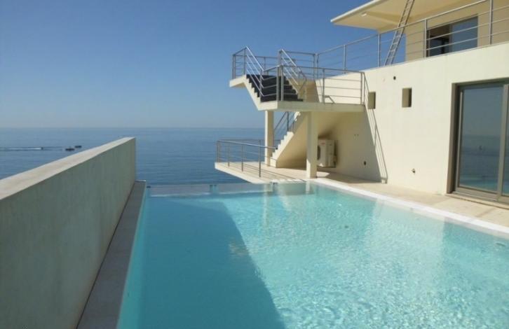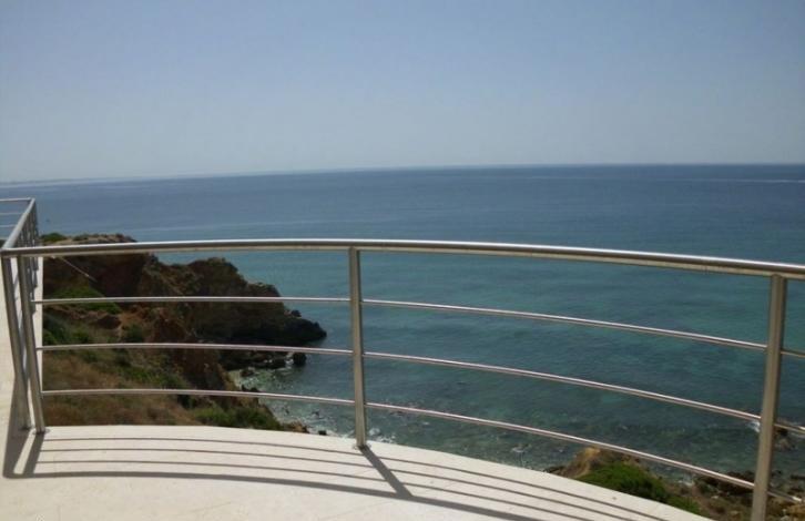 The villa of modern architecture with panoramic ocean views located in Albufeira with easy access to the beach, marina, golf courses and other infrastructure. The villa has spacious rooms with panoramic windows, five bedrooms, a modern fitted kitchen, pantry, dining room with fireplace, living room, six bathrooms. Large terrace with swimming pool.