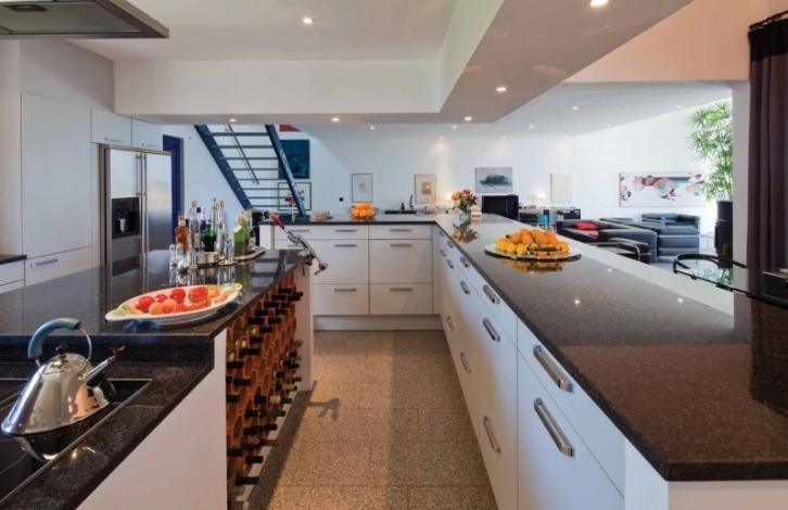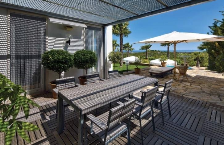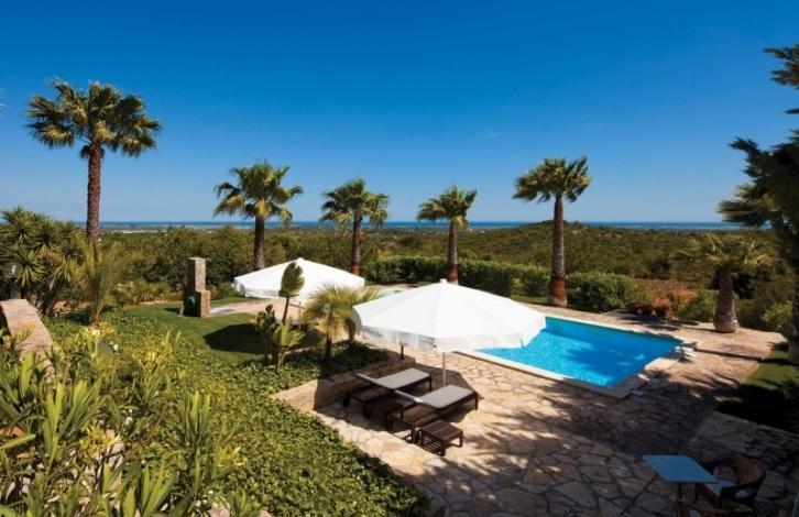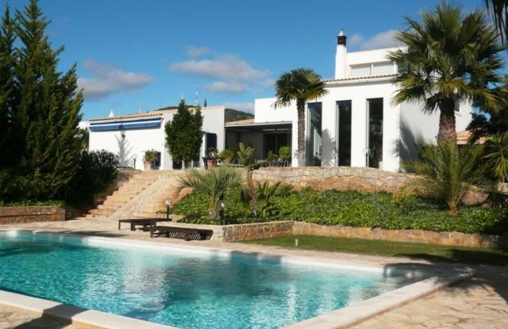 Modern villa located on a hill, offering a fantastic panoramic view of the ocean. The villa is located near the village of Moncarapacho and is built on a large plot at the entrance to which you are met with beautiful cypress trees and oleandry. Villa designed and built with great taste, with high ceilings and big spaces. Dining room open plan, where the center is a professional kitchen, fully equipped with the best technology. The house has a large amount of storage space, walk-in closets, built-in wardrobes. Excellent terrace for relaxation and comfort with beautiful views. Cellar 20 m2, garage s car and parking, utility room with oborudovaniem. Villa built using the best materials to the highest standards. Magnificent landscaped garden, planted with a variety of plants and fruit trees. Large salt water pool and outdoor shower.