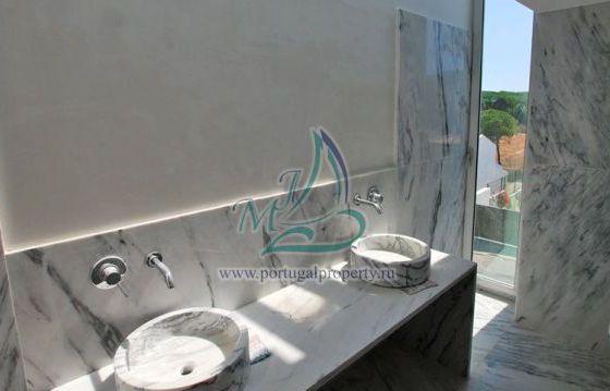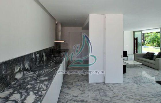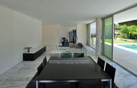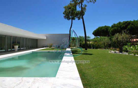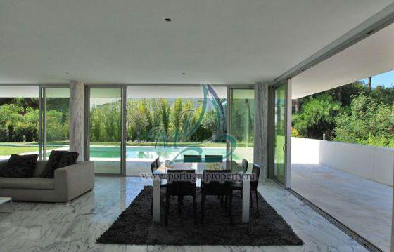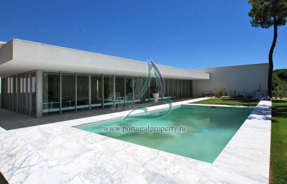 The villa is located in a prestigious area near Falesia Beach in Albufeira, near the golf course of Penina. The villa of modern design has a flat roof, where there is a large terrace. The pool is rectangular in shape is a continuation of the geometry of the house. Functional layout has an expressive communication with the outside of his home garden. The house has an entrance hall, lounge, dining room, fully equipped kitchen, 5 bedrooms with en suite bathrooms, pantry, laundry room, office, garage for two cars. Large panoramic windows with good access light. On site there is a swimming pool, landscaped garden with automatic irrigation.