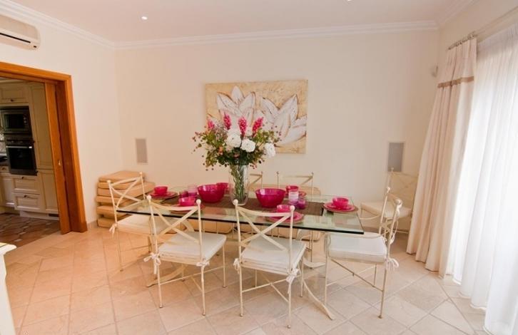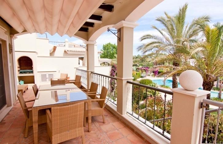 Townhouse in classic Portuguese style, in a gated complex in the magnificent Golden triangle of Portugal, in QUINTA do Lago, a short walk to the beach. Three storey house, beautifully and tastefully decorated, open plan living and dining area, three bedrooms with bathrooms, a fully equipped kitchen, office. Wide terrace with dining area overlooking a magnificent tropical garden and pool.