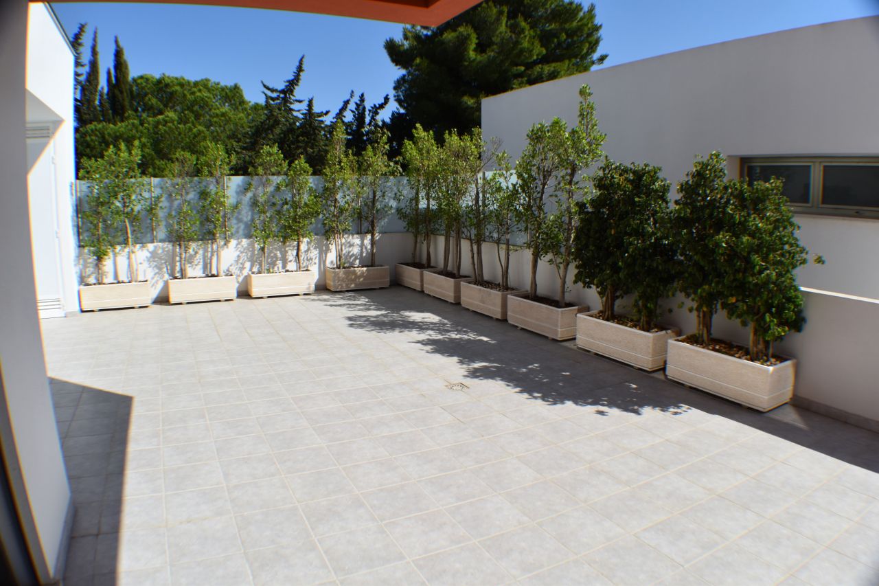 Апартамент включает: прихожая, 4 спальни со встроенными шкафами, 3 ванных комнаты, гостевой санузел, полностью оборудованная кухня (встроенная техника Zanussi) с террасой, просторная гостиная/столовая с выходом на большую террасу и барбекю.