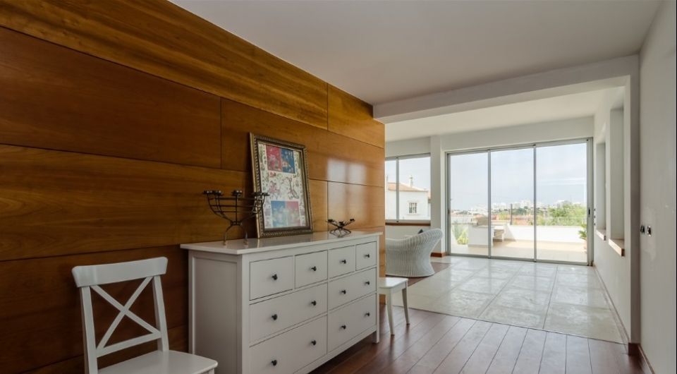 This brand new modern Villa has a construction area of 650m2 and is situated just a few footsteps from the Beaches,and Village of Ferragudo. It is composed of 4 bedrooms in total, 3 of them with ensuite bathrooms, and one with a large terrace and fantastic views towards the Marina of Potimao. The property also has a 3 car garage, and large basement with the possibility to create an extra Apartment. The property has many features, including a heated swimming pool equipped with jacuzzi jets, heated seating area around the pool with partial roof coverage. The villa has underfloor heating, pre-installation for air conditioning, vacuum cleaning system, and electric entrance gates. The property needs final details to be completed. A rare opportunity in this area, especially with these fantastic Views!