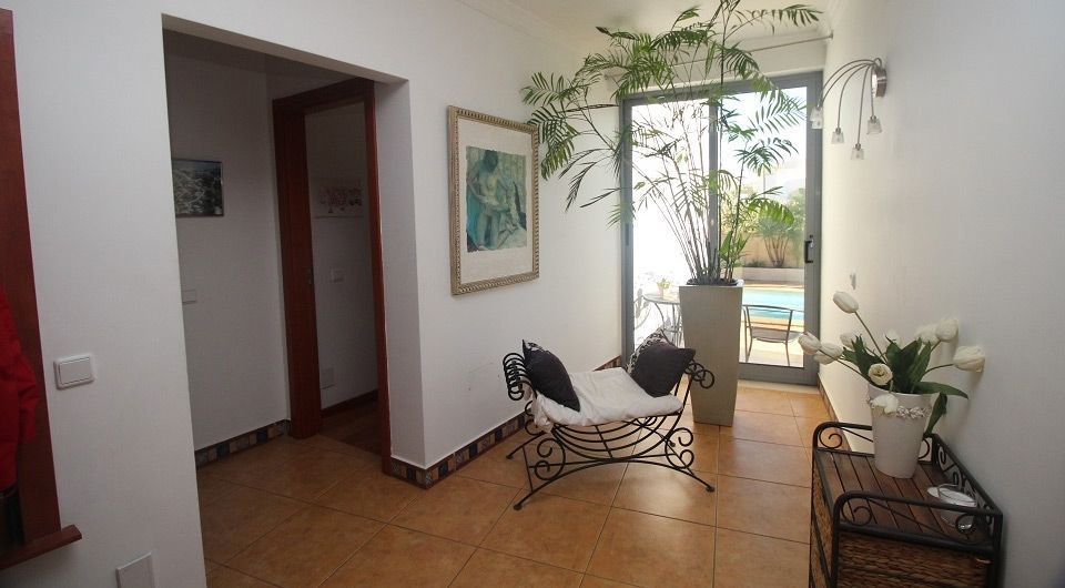 This bright and contemporary home is located within 400 metres to the beach. It is located within an urbanization in Armacao de Pera, benefiting from walking distance to all the amenities and the beach. From the entrance the high-ceiling hall welcomes us into the villa, opening to the right into the open concept living and dining room with large floor to ceiling windows and a modern fireplace. The kitchen, is fully equipped with separate laundry area and access to the swimming pool and outdoor dining area and bbq. On this ground level, there is also one bedroom, and one office, plus one bathroom. The top floor has also a bright hall and modern stairway and two ensuite bedrooms. The basement hosts an additional guest room with living room, a bathroom, workshop and garage.
