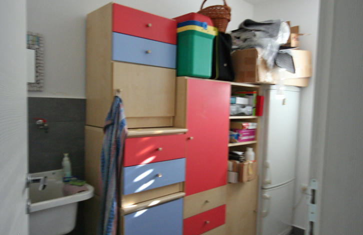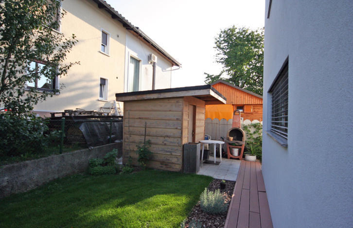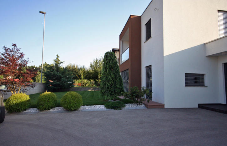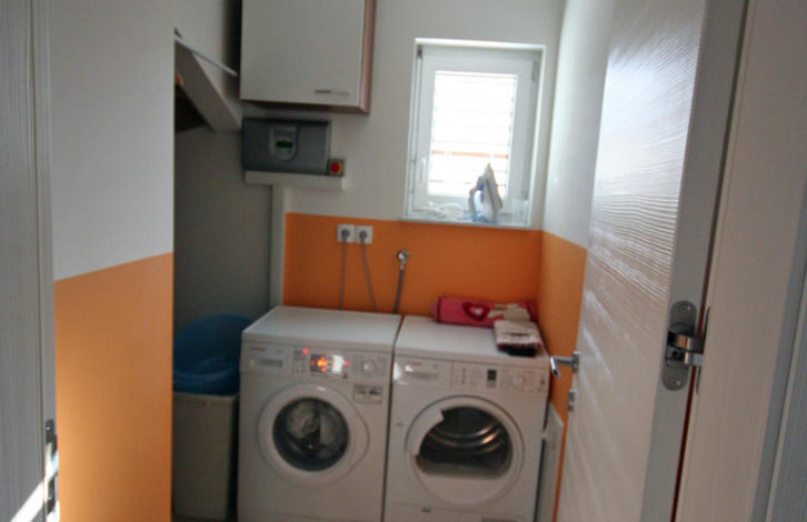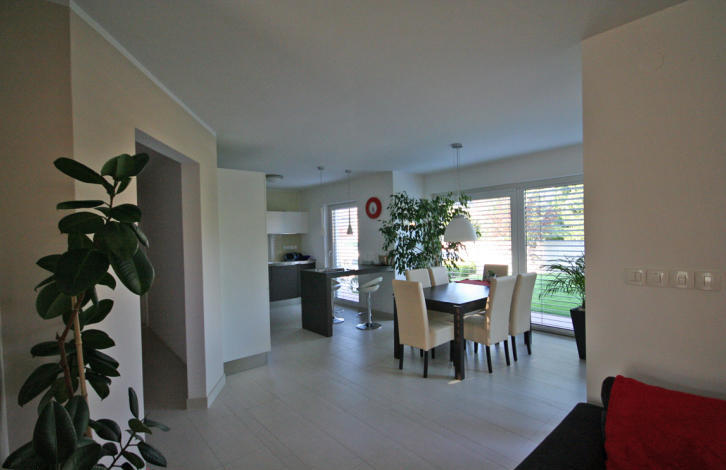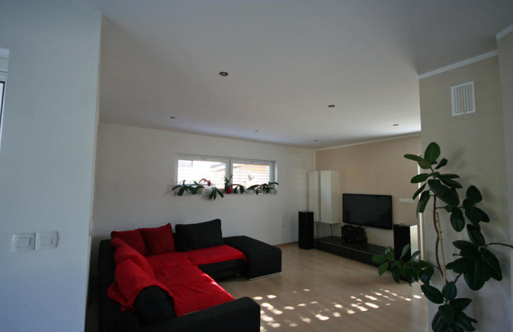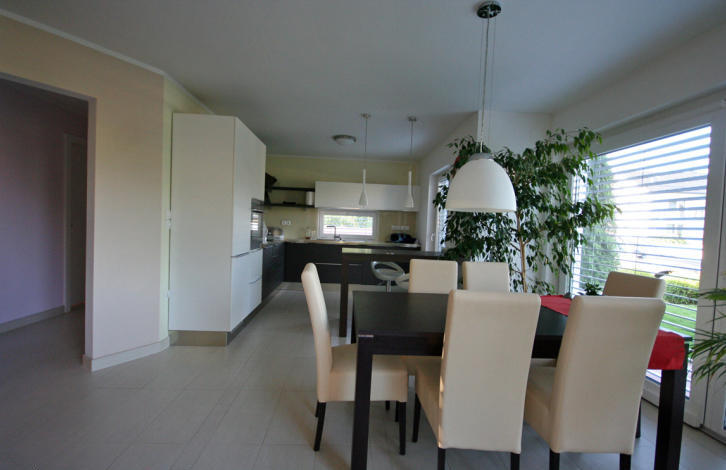 All the furniture, as well as the whole house, is modern. The neighborhood is very well-groomed (lawn, trees and shrubs), behind the house is a small vegetable garden, a wooden house for accessories for the garden and brazier.