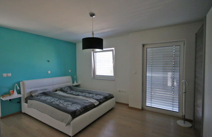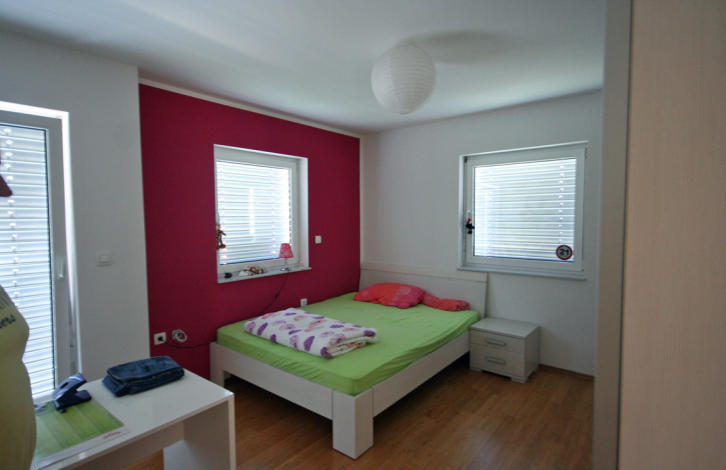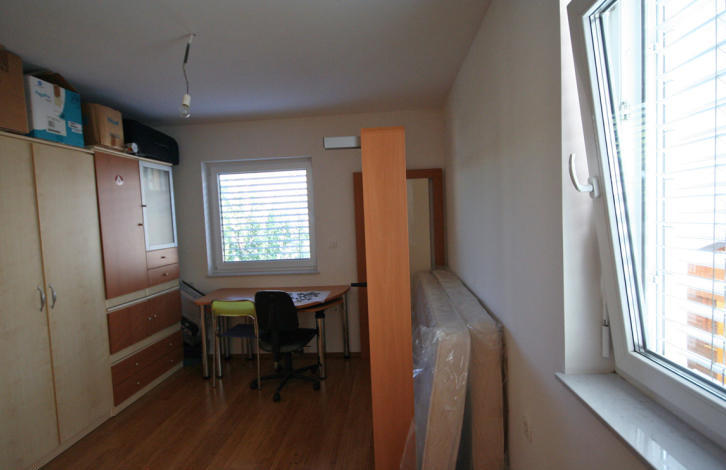 Just a few kilometers from the city of Kranj, in a village where there is all the necessary infrastructure (kindergarten, school, shop, bus service ...) is for sale a beautiful modern house, located on 160 m2. The village of Mlaka is located a couple of kilometers from Ljubljana airport, 15 minutes drive from the capital and also 15 minutes from Lake Bled. On the first floor there is a large room (living room, dining room, kitchen with fireplace), guest toilet, main entrance to the house and transfer to the garage, designed for 2 cars. At the garage there is a small storage room and under the stairs there is utility with washing and drying maschins. On the second floor there are 3 bedrooms and a bathroom with a shower.