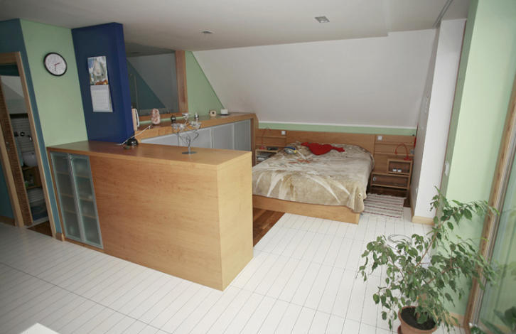 In the Eastern part of the house has a large bedroom, dressing room and large bathroom. From the dressing room there is an exit to the terrace ..in drovnitsa and down the stairs transition to the pool and Wellness.