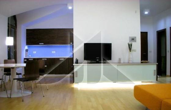 В квартире гостиная со столовой, гостиной и кухней с выходом на балкон с видом на море, кабинет, спальня, туалет и ванная с душем. Высота потолков более 3 метров. Дом со всеми удобствами.