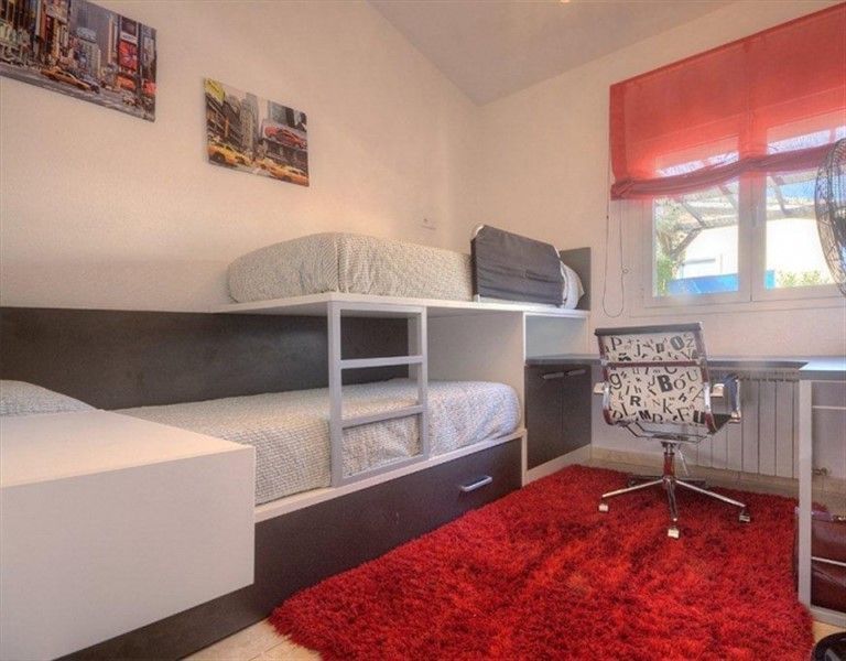 Вилла двухэтажная, очень красиво оформлена, комнаты большие и светлые, 3 спальни, 2 ванные комнаты, гостиная, кухня, отдельная прачечная, подсобное помещение. Вилла оснащена газовым центральным отоплением, кондиционерами, окна имеют двойное остекление, имеется сигнализация, сад и частный бассейн, стоянка для автомобиля.
