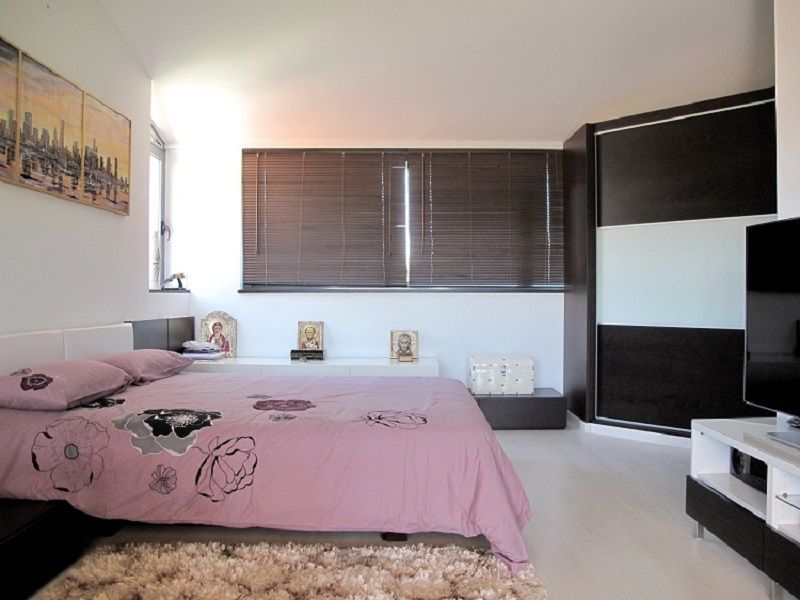 Особую «изюминку» дому придает мастер-спальня на верхнем этаже, из которой открывается исключительный вид на окрестности. Дом располагает пространством для размещения трех автомобилей и дополнительным подсобным помещением.