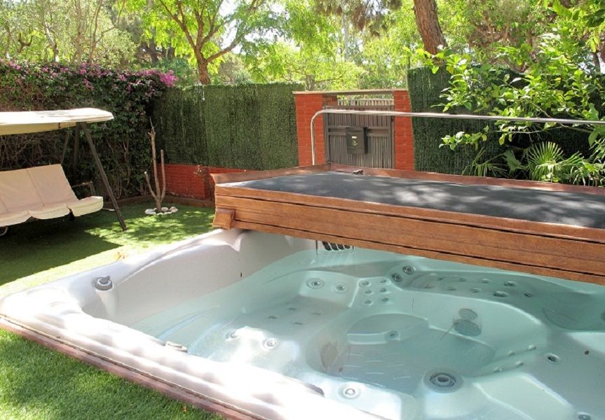 Частный сад и бассейн с джакузи.