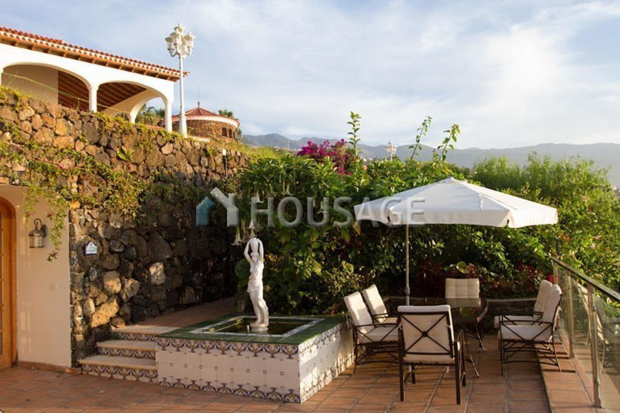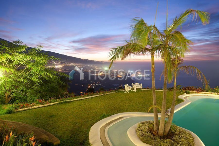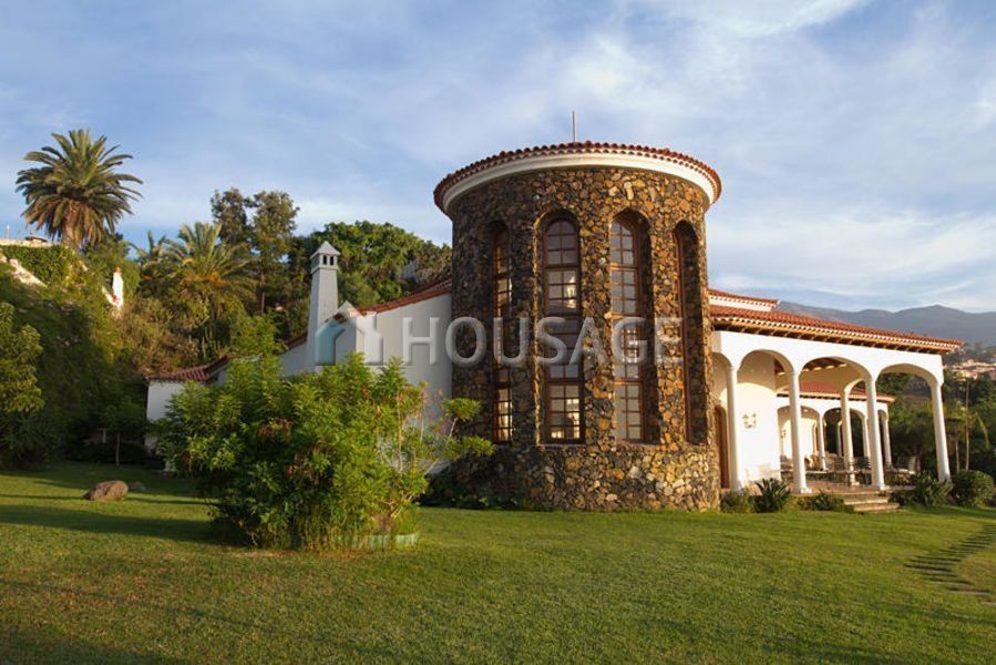 Beautiful Villa with 1000m2 plot 4400м2. The Villa is located in one of the most beautiful places of Tenerife – Vista paraíso, on top of a hill with a unique view of Puerto De La Cruz, the ocean and the peak of the Teide volcano. The building is designed in such a way that the major part of all rooms located on one floor except a large basement which houses a dining room for guests, gym, pool, sauna, Hammam etc. A beautiful staircase, the decoration of which used precious woods, leads us to the hall for piano and art Studio. On the main floor are a spacious, bright living room, dining room with table for 12 persons. 3 bedrooms, each of which has its own access to a spacious terrace with a beautiful view of the ocean. Adjacent to the large kitchen located in the staff room. The house itself is surrounded by a garden with palm trees and a swimming pool.