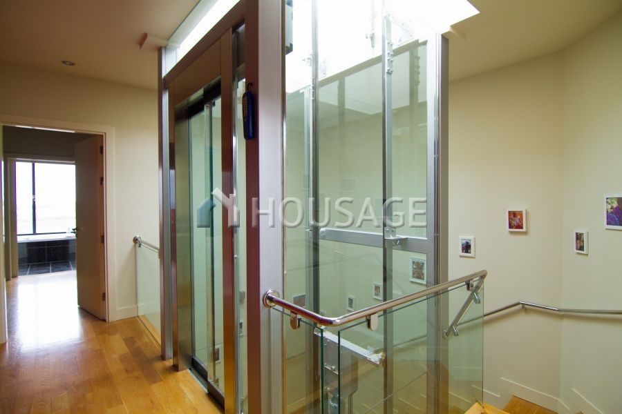 Система кондиционирования во всем доме, паркет, сигнализация, бассейн с подогревом и лифт, который соединяет все три этажа.