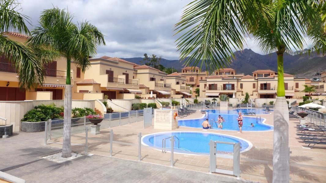 Прекрасный таунхаус в престижном комплексе Villas del Duque. В комплексе есть бассейн. Вблизи множество баров, ресторанов, кафе, и, конечно, один из лучших пляжей юга острова Тенерифе Playa del Duque. В цокольном этаже расположен гараж на две машины и кладовое помещение. На первом этаже огромная терраса, отдельная кухня, столовая, прачечная, гостиная и гостевой туалет. На втором этаже две спальни с ванными комнатами и террасами. На верхнем этаже соляриум с зоной для барбекю. Отсюда открывается завораживающий вид на океан и горы.