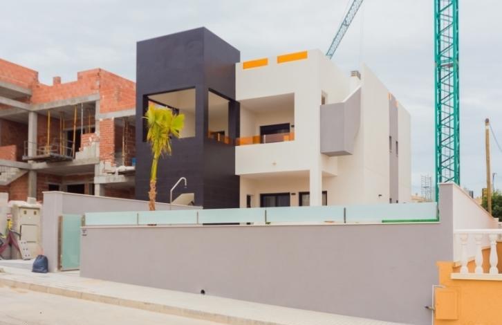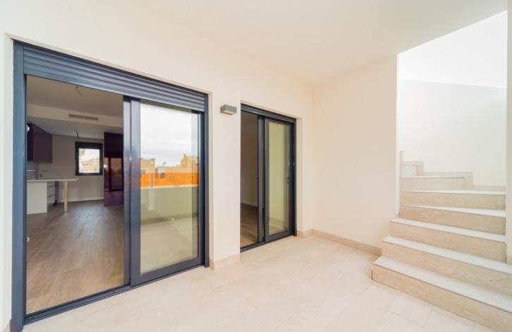 New townhouses in the style of hi Tech in the quiet town of Los Altos. Construction of the new complex by using modern technologies. Townhouses with an area of 69 sq. m. with a 69 sq. m. Solarium Use only quality and expensive materials. The house large Windows, electric blinds, solar panels, Underfloor heating in bathrooms, pre-installation of air conditioning, granite floors from the manufacturer Saloni, kitchen countertops from Silestone, modern appliances and plumbing. Features a private Solarium, Parking for cars, terrace, living room with kitchen, two bathrooms and two bedrooms with wardrobes. The complex is refined with green area and swimming pool, near restaurants, two Golf courses, supermarkets and beach in 2. 5 km.