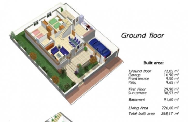 We offer You the latest cottages in elite residence Da Vinci 2 in Barcelona, Spain. Da Vinci 2 is gated with a Central closed entrance, designed by the best architects of Spain. House in art Nouveau style with improved design, finished with the best materials: electric blinds, pre-installation of alarm and air conditioning throughout the house, marble staircase. The house is built on a plot of about 200 m2, living space of about 230 m2, the house consists of 3 floors. There is a ground floor 97 m2, which allows you to make a choice : gym, sauna, billiard room, extra room, rest room, kitchen etc On the ground floor is a spacious lounge, separate fitted kitchen, 2 bedrooms with fitted wardrobes, bathroom, terrace, storage room and the kitchen access to technical patio. On the second floor is the master bedroom with bathroom, balcony and a large Solarium. In the house there is a garage with electric gates, the plot of land. Common area with large pool, sunbeds and a cafeteria. Perhaps lending up to 85% at 3% per annum.