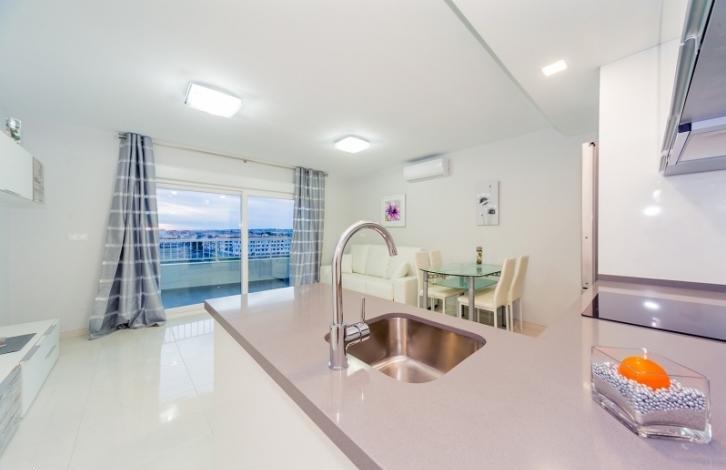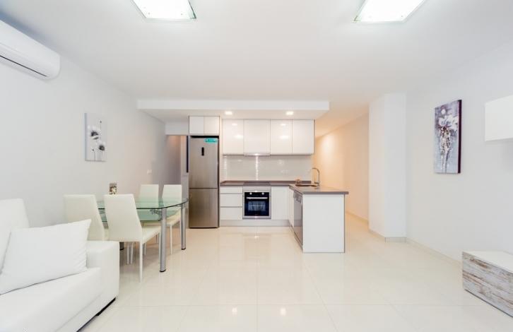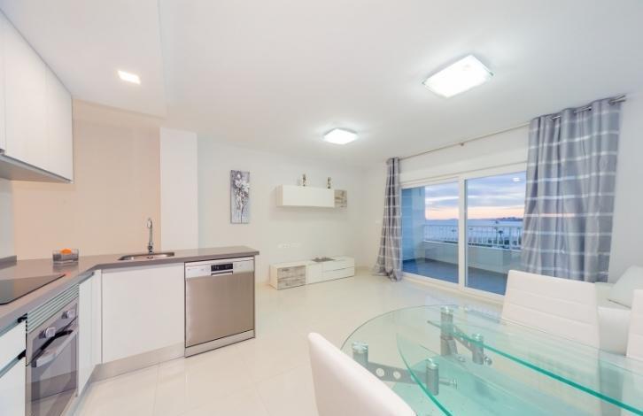 For sale apartment renovated, fully equipped with appliances. The apartment has air conditioning, quality Windows, the cabin has electric blinds, installed a new white door and a wardrobe. Kitchen with appliances, washing machine and Silestone worktop, the bathroom has a heated floor. Sold with designer furniture. Apartment with panoramic sea views, La manga, the salt lakes. Just 30 metres from the beach of Los naufragos, next to a green area, 2 minutes to the highway.