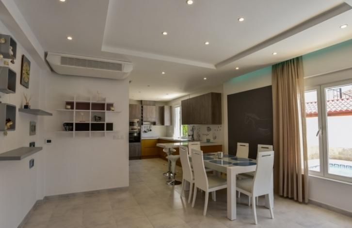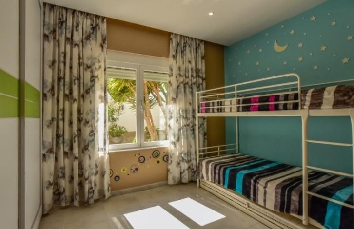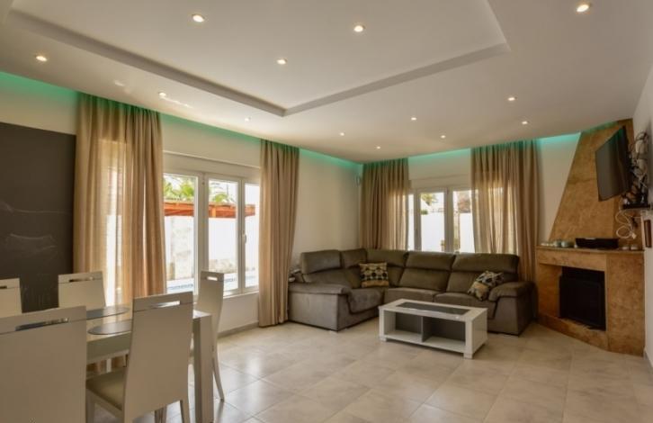 Luxury Villa with an area of 214 sq. m. in a prestigious area of Orihuela Costa in Kabo Roig. In the house on the first floor are two large bathrooms, two guest rooms, kitchen with access to patio and spacious living room with fireplace, the second floor has three bathrooms, three large bedrooms and access to the terrace and third floor terrace and Solarium. On an area of 560 square meters beautiful garden with swimming pool with LED lighting, shower with boiler for water, a relaxation area with furniture, barbecue area. The Villa is fully equipped with appliances and furniture also have intelligent air conditioning and heating throughout the house, including Underfloor heating. The current system Aerothermie allows you to adjust the climate control for each room. The kitchen is equipped with German appliances: food waste disposer, water filter, oven, dishwasher, microwave, hob and fridge. The house was built using advanced technology and quality materials. Kabo Roig is a cozy and quiet area, shops, restaurants, sandy beach and Marina within walking distance from the Villa. Distance to sea about 2 minutes to a leisure centre La Zenia Bulevar no more than 5 minutes to the Golf course Willamartin 10 minute drive Murcia 25 minute drive and Alicante airport 50 minutes.
