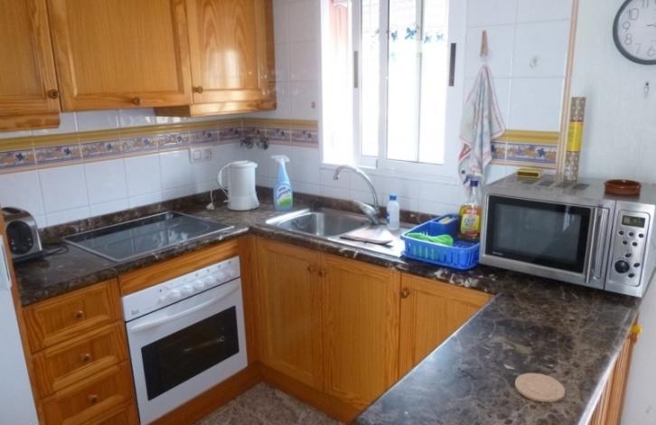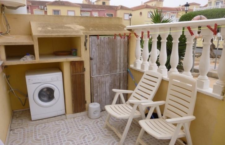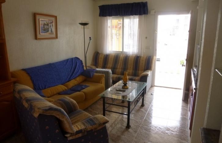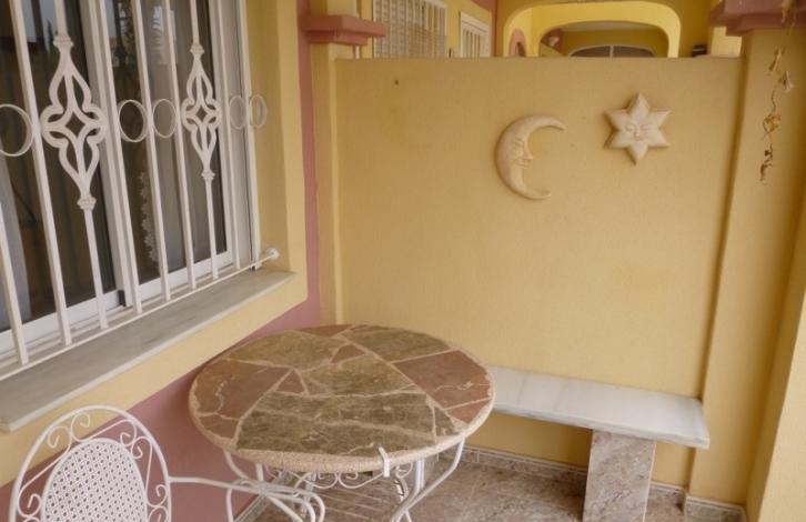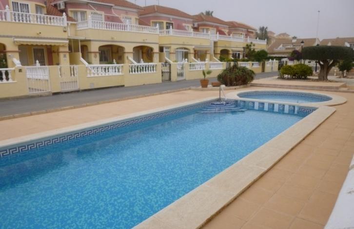 Beautiful townhouse in a gated complex with swimming pool in La Zenia. An area of 75 square meters. Consists of lounge, 2 bedrooms, open kitchen, 2 bathrooms, terraces. The 2 on-site garden with barbecue area. The house is equipped with household appliances, furniture. Literally a 3 minute walk is a large commercial centre with all necessary amenities.