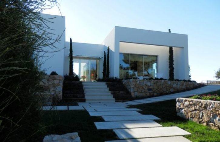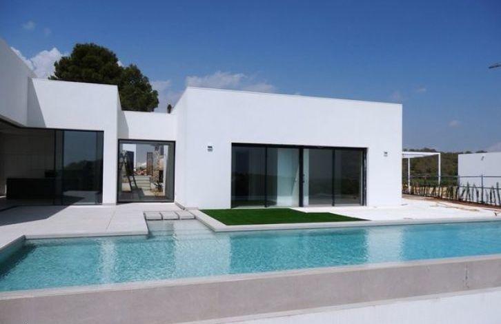 Exclusive villas first line Golf and sea views in the city of Orihuela (Costa Blanca). Stylish modern home with high ceilings and spacious rooms. The villas have 3 / 4 bedrooms and 3 bathrooms, master bedroom with bathroom air conditioning with heat pump (aerothermie).