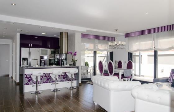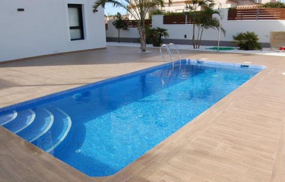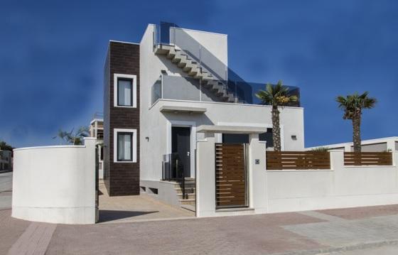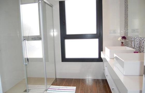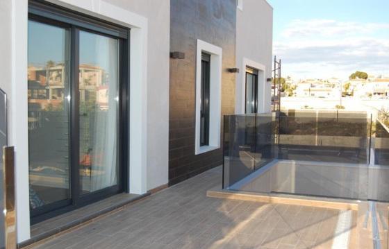 Salon with dining area and access to the garden, American kitchen, 3 spacious bedrooms, 3 bathrooms with heated floors, one bathroom has access from the bedroom, Solarium with views of the coast line of Torrevieja, basement of 105 m2, private swimming pool size 7x3 m. Large Windows in all rooms, Preinstallation of air conditioning, high quality materials.