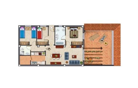 3 bedrooms, 2 bathrooms, kitchen and terrace with sea views. The complex has communal areas which consists of 2 large pools in the form of lakes, club, gardens and children's Playground.