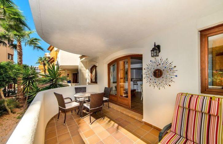 Апартаменты расположены в комплексе Панорама-Парк жилого района Сеньорио-де-Пунта-Прима, в 500 метрах от ближайшего пляжа. Недвижимость находится в отличном состоянии и состоит из двух просторных спален со встроенными шкафами, одной ванной комнаты, уютного салона-столовой, полностью оборудованной американской кухни с барной стойкой и террасы с видом на зеленую территорию с тропическими растениями. В апартаментах есть система кондиционирования, домофон, полы устланы керамической плиткой высокого качества, дверные проемы, окна и ставни изготовлены из темного дерева в деревенском стиле. В стоимость входят парковочное место в подземном гараже и место в общей кладовой. В здании есть лифт, ведущий из паркинга к квартирам. Закрытая территория охраняется 24 часа в сутки.