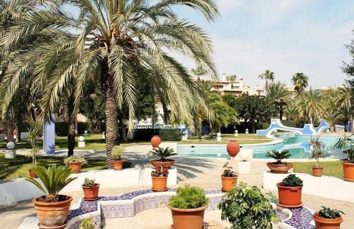 Этот комплекс окружен прекрасной зеленой территорией с площадью более чем 2000 квадратных метров. На территории комплекса Вы найдете тропический сад и бассейн. И все это всего в 100 метрах от песчаного пляжа и, в тоже время, вблизи центра города и всей его инфраструктуры. Именно на этом пляже собраны всевозможные развлекательные водные аттракционы, детские площадки, здесь проводятся ежедневные утренние гимнастические упражнения под руководством опытных тренеров. Сразу за пляжем начинается многокилометровая набережная - променад, которая ведет к центру города с уютными испанскими улочками, наполненными сотнями различных ресторанов и баров, знаменитых обувных и сувенирных магазинчиков. В городе находятся аквапарк, парки аттракционов и всевозможные центры развлечений.