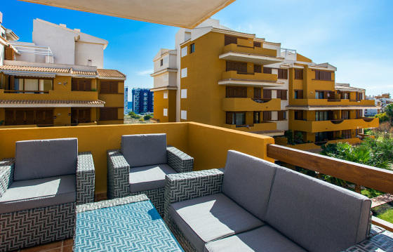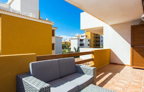 Private residential complex with sea views, situated in Punta prima. The apartment has a living room, kitchen, 2 bedrooms and 2 bathrooms. Communal pool in the complex. Close to all amenities.