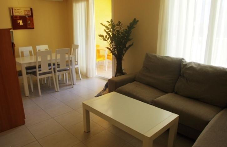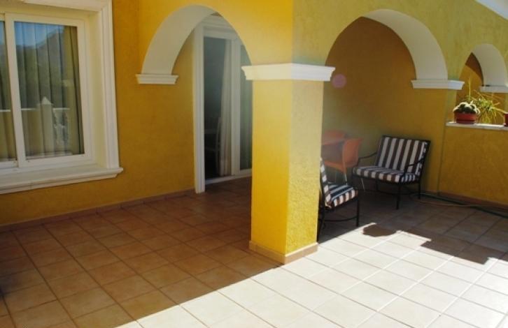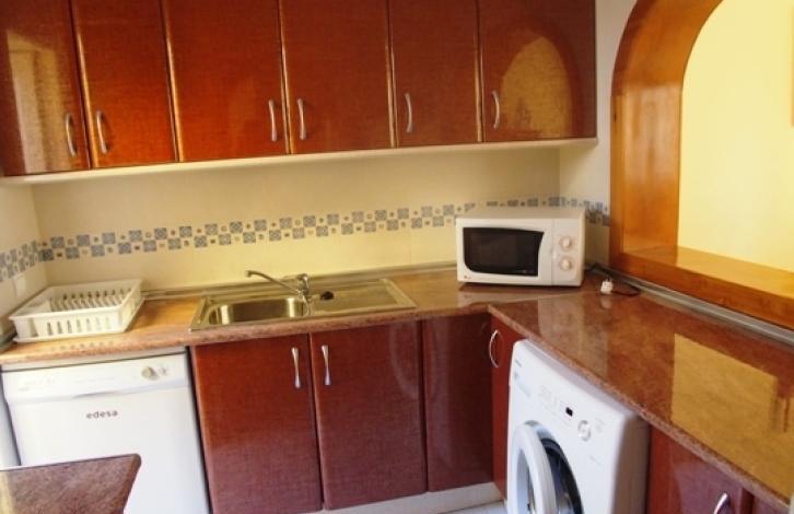 Уютные апартаменты расположены в тихом жилом районе города Кальпе с захватывающим видом на горы. Дом разделен на два этажа. Площадь 100 кв.м. Первый этаж состоит из светлой гостиной с выходом на террасу, полностью оборудованная бытовой техникой кухни, кладовой и ванной комнаты (душ). На верхнем этаже 2 спальные комнаты со встроенными шкафами и выходом на террасу, ванная комната (ванна). Кондиционер тепло/холод. В комплексе общий бассейн с зеленой зоной. Парковочное место. TPc100
