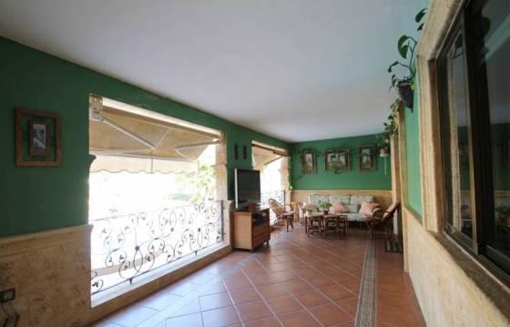 Основные комнаты в доме расположены на одном уровне, на верхнем этаже фитнес-центр, в подвале погреб. В доме также есть гараж для нескольких автомобилей, автоматические ворота.