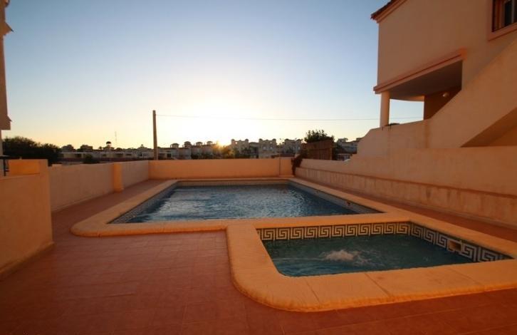 For sale is a townhouse located in Costa Blanca, Spain. The townhouse is located in a very cozy and quiet area. The townhouse is built to the highest standards of design and quality. The townhouse has only 3 rooms, Inside there is a spacious living room, several bedrooms and bathrooms, and a fully equipped kitchen with a dining area. Also in the townhouse there is a balcony and several exits to the terrace and outside. Outside there is a chic garden and a swimming pool. Also there are parking spaces. The townhouse is located next to the infrastructure, which includes various shops, bars and restaurants. Excellent purchase both for the purpose of renting and for permanent housing.