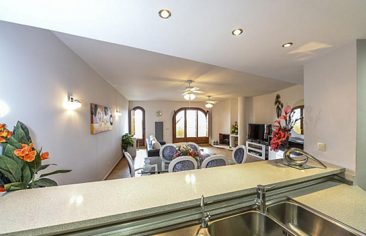 Apartments in Panorama Park, Punta Prima, Torrevieja. Salon with fireplace, fully equipped kitchen, 2 bedrooms with fitted wardrobes, 2 bathrooms, terrace of 25 m2. The total area is 159 m2. Complex Panorama Park is considered the most beautiful in the residential area of Punta Prima. The territory of the complex includes beautiful landscaped areas, underground parking, 2 swimming pools for common use and an abundance of tropical plants. Through the fence there is a pitch for pitch and patt. The property is 5 minutes walk from the bay of Cala Piteras and 2 other beaches: Playa de Punta Prima and Cala Ferris. The complex is guarded 24 hours a day. Panorama Park is guarded 24 hours a day, there are 2 swimming pools and plenty of greenery. Punta Prima is a residential area a few steps from the sea. In walking distance all necessary infrastructure is located: shops, pharmacies, restaurants, fitness club, bus stop. The schools and shopping center of Zenia Boulevard are only a short drive away. On foot you can walk to the bay of Cala Piteras, the beach of Punta Prima and other beaches of the Orihuela-Costa coast, which are assigned blue flags. Within a few kilometers are the golf clubs Las Colinas, Campoamor, Las Ramblas, Villamartin, La Marquez, La Finca. Punta Prima is a quiet residential area, located five minutes drive from Torrevieja. Nearby are such important places as the hospital, English and Spanish colleges, the commercial center of Zenia Boulevard and the Abaneras shopping center. In walking distance are 2 pharmacies, numerous bars, cafes, pizzerias, restaurants, supermarket, fitness center. Good transport links and 2 bus stops. In five minutes drive - tennis and yacht clubs Torrevieja, and within a radius of only a few kilometers - golf clubs Las Colinas, Campoamor, Villamartin, Las Ramblas, La Marquez, La Finca. A great place for walking.