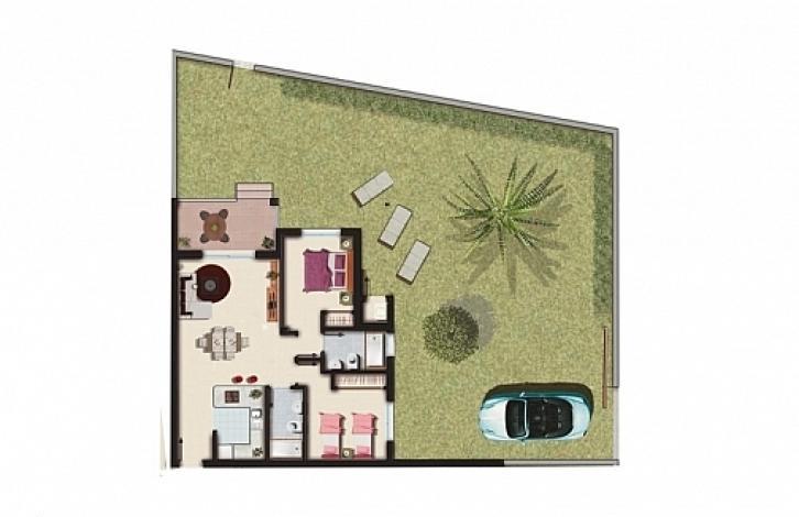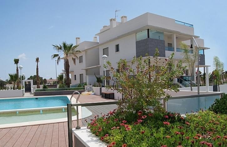 ground floor Apartment in a gated residential complex in Ciudad Quesada. Lounge with dining area, kitchen, 2 bedrooms, 2 bathrooms, private garden of 85 m2 and a storage room. The apartment offers wonderful views to the natural Park and lagoon. The complex has greenbelts, swimming pools, gym and Parking.