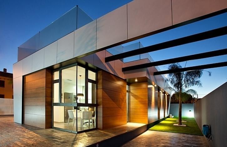 2-storey villa in a modern style in Torre de la Horadada, Costa Blanca south. Spacious lounge, fully equipped American kitchen, 3 bedrooms, 2 bathrooms, dressing room, solarium with stunning sea views, 304 m2 garden, garage and private pool. Torre de La Oradea is a prestigious place on the Costa Blanca, close to such cities as Mil Palmeras, Campoamor, San Pedro del Pinatar, Pueblo Latino and Orihuela Costa. Within 10 minutes you can reach the famous salt lakes in San Pedro del Pinatar, the Thalassia Spa. The average annual temperature in this place is 180, and the sun shines 2500 hours per year. In addition to magnificent weather, this place is famous for its sandy beaches, such as Playa Hesuitas, Playa del Puerto, Playa de Las Higuerikas. Only 5 minutes drive is the commercial center of Zenia Boulevard. With large cities, communication either on the national road N-332, or on the high-speed highway AP-7.