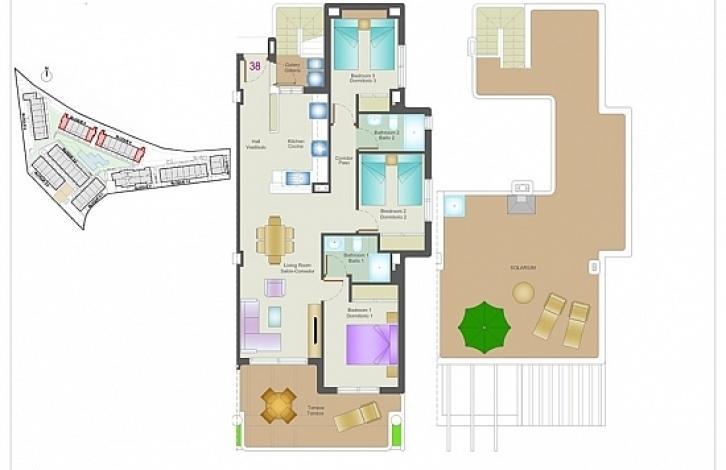 he bungalow is located in a residential complex where there is a large swimming pool with Jacuzzi, lawn with an area of 1200 sq. M. m., a playground, two mini-golf courses, a training golf course and biomechanical trainers. The complex is located near the coastal areas of La Zenia, Cabo Roig, Playa Flamenca. The area is well connected to the AP-7 motorway. An ideal place to relax in a warm Mediterranean climate. Within 10 minutes you can walk to the beach. Nearby are all kinds of services such as restaurants, bars and shopping centers.