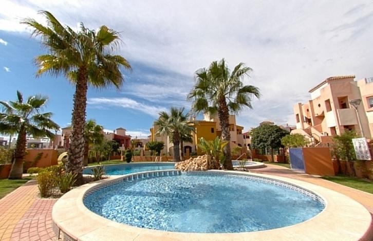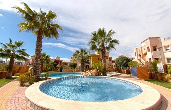 The apartments are in excellent condition, built in a rustic style. Located in a quiet area, in the urbanization of Punta Marina, Torrevieja, just 1 km from the beach and close to shopping centers, supermarkets, bars and restaurants. Punta Marina is a quiet area located close to all services. The property has two bedrooms with fitted wardrobes, two bathrooms, one en suite, a living room, a separate kitchen, a gallery, a sun terrace, a private garden with an area of 40 m2 and a parking lot. The floors are lined with ceramic tiles, windows are climatized, alarm system, grilles, communal pool. Developed infrastructure: supermarkets, pharmacies, cafes, schools, sports facilities, bus stop. The shopping centers of Zenia Boulevard and Abaneras are a short drive away. The beach of Punta Prima can be reached on foot, while the beaches of La Zenia, Playa Flamenca and Torrevieja are 10 minutes away by car. Within a radius of only a few kilometers - golf clubs Las Colinas, Campoamor, Villamartin, Las Ramblas, La Marquez, La Finca. The area is located on the border between the city of Torrevieja and the coast of Orihuela Costa. An ideal place for people who value peace and quiet. The area is well connected to the AP-7 motorway and the national road N-332 to Torrevieja and Cartagena.