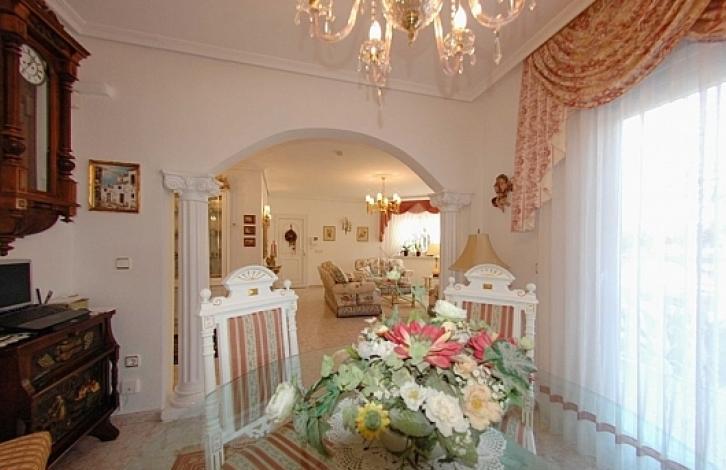 Magnificent villa in the area of San Luis, Torrevieja: three bedrooms, two bathrooms, spacious living room, separate kitchen, two terraces, underground garage, garden and private pool. semi-furnished. The total area of the house is 160 square meters. m., a plot of 400 square meters. The house has air conditioning and heating. The villa is located in a beautiful and quiet location, only 4 km from the beach and close to the Abaneras shopping center. San Luis is one of the most prestigious areas of the city of Torrevieja, near the reserve of La Mata and the famous salt lake of Torrevieja. Within a few minutes you can reach the national road N-332 and the AP-7 motorway. The center of Torrevieja can be reached in 5 minutes.