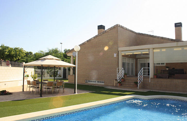A spacious villa with a swimming pool in the village of Mutshamel, 3 km from the beach of San Juan, Alicante.
