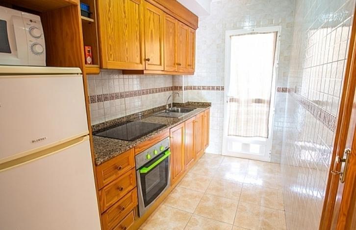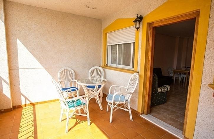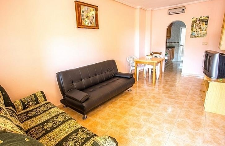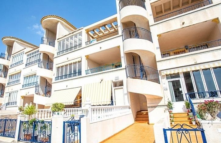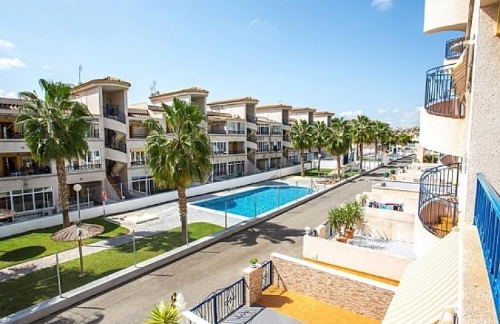 Apartments in the residential complex Viyas-Don Sancho, Los Altos, Orihuela-Costa: 2 spacious bedrooms with fitted wardrobes, 1 bathroom, separate kitchen, gallery and terrace which looks to the south. The apartments have a beautiful view of the urbanization and are in a complex with a communal swimming pool and a garden. Los Altos is a quiet place for recreation located in the southern part of Torrevieja, next to Orihuela Costa. Nearby are all services such as shopping centers and sports complexes. The area is well connected to the AP-7 motorway and the national road N-332. In five minutes drive are the beaches of Punta Prima, Cala Piteras, La Zenia and Playa Flamenca.