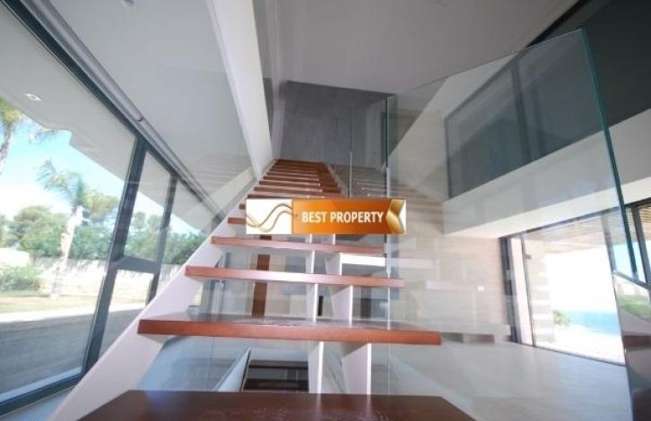 Вилла в известном и престижном районе Портичоль, между Кала Сардинера и пляжем Баррака, рядом с Международным колледжем.Фантастический дом с уникальным дизайном, откуда можно полюбоваться захватывающим панорамным видом на море и Кап Марти. Основной этаж: просторная и светлая гостиная (два уровня), дизайнерская кухня, оборудованная по последнему слову техники. На этом этаже есть туалет и удобная спальня с ванной комнатой, гардеробной и выходом на террасу. На террасе располагается эффектная зона отдыха с барбекю и деревянной беседкой, огромный бассейн инфинити с уникальным дизайном и двумя уровнями поверхности воды. Второй этаж: очень большая спальня с гардеробной комнатой и роскошной ванной комнатой, комфортабельная спальня-люкс с гардеробной. Нижний этаж: спа - центр с джакузи, финской сауной и тренажерным залом, большой рекреационный зал с винным баром, баром и роскошным кинотеатром, апартаменты для гостей с одной спальней, ванной комнатой и кухней.